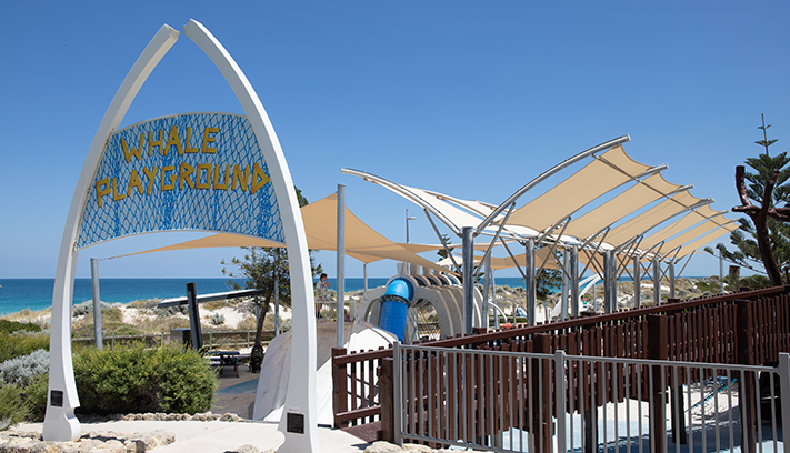Located just north of Sunset Hill, the playground is designed around a whale skeleton, interpreting Wadjak Nyoongar Dreaming stories of spirits returning to land through the whales.