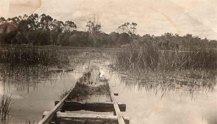 Image source: Market garden trolley tracks heading into Gwelup Lake, c1935. City of Stirling Art and History Collection.