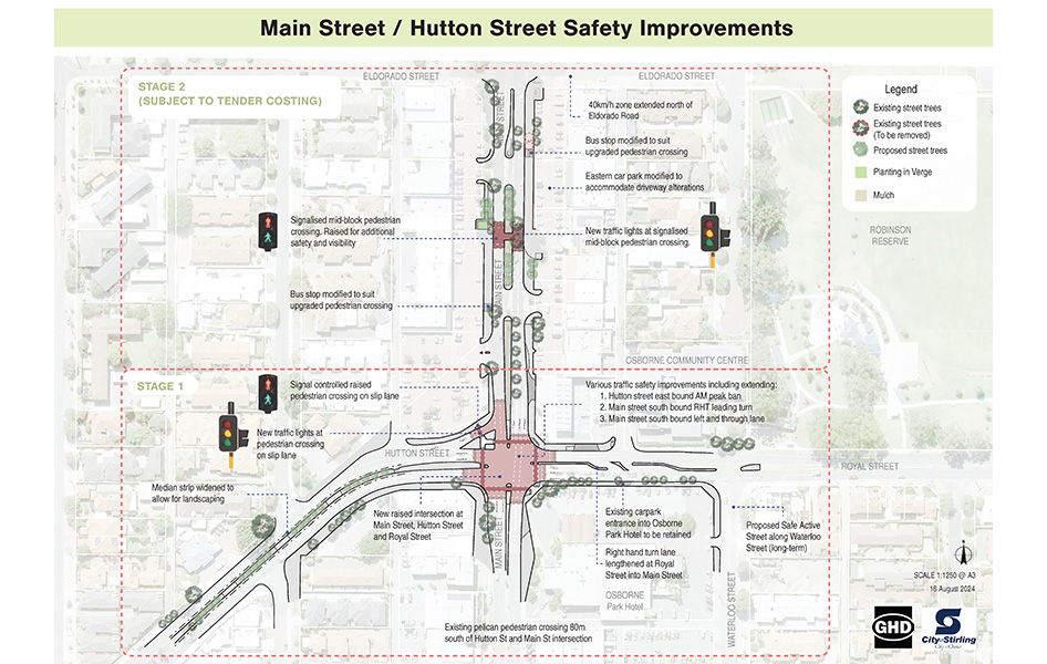 In collaboration with Main Roads WA, the City is planning to enhance the intersection at Main Street, Hutton Street and Royal Streets. We aim to create a safer and more accessible environment for vehicles and pedestrians. The project is part of the State Government’s WA Recovery Plan and aligns with their commitment to invest in road projects that create and support local jobs and local businesses.