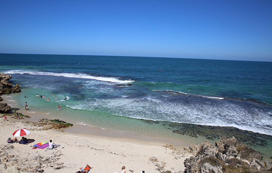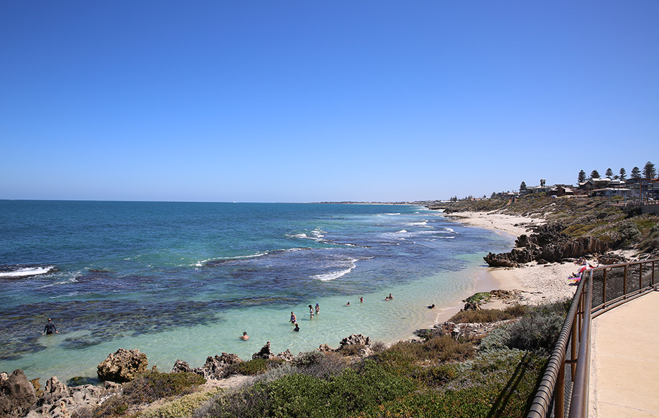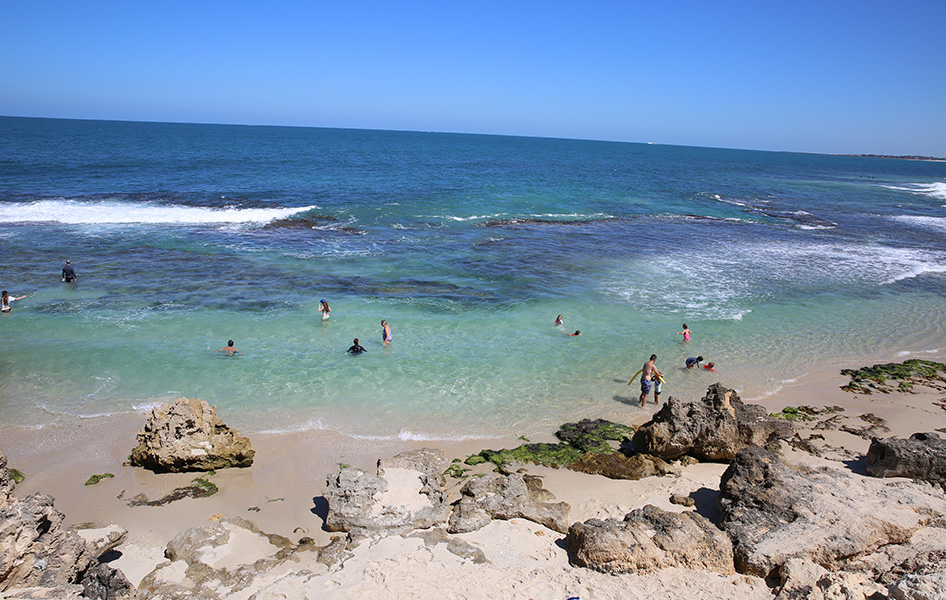 Hamersley Pool is located on the corner of Hamersley Street and West Coast Drive, 1.6km from Trigg Beach. It is a reef-enclosed, tidal pool that attracts snorkelers and swimmers, and is a popular location for families.