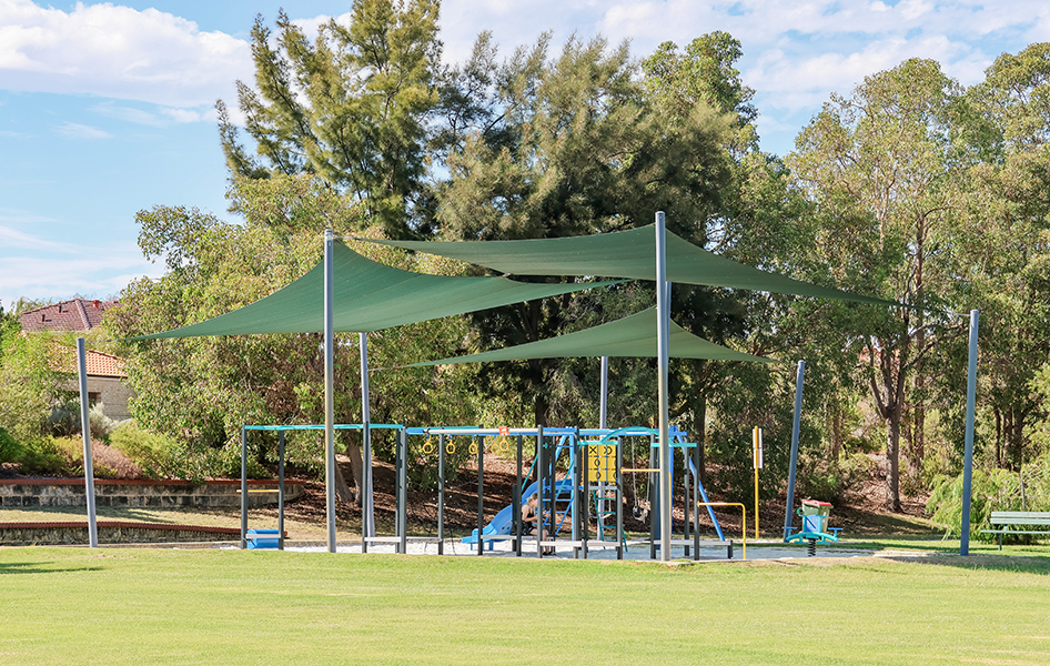 Mirrabooka Regional Open Space includes a sail-shaded playground and sporting grounds.
